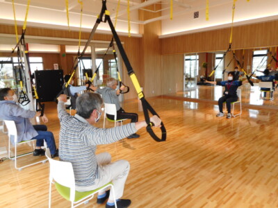 | デイサービス3 健康運動指導士・介護予防指導士・理学療法士のリハビリ | TRX・パワープレート・テクノジムキネシス・バイク等を使用 ![]() |